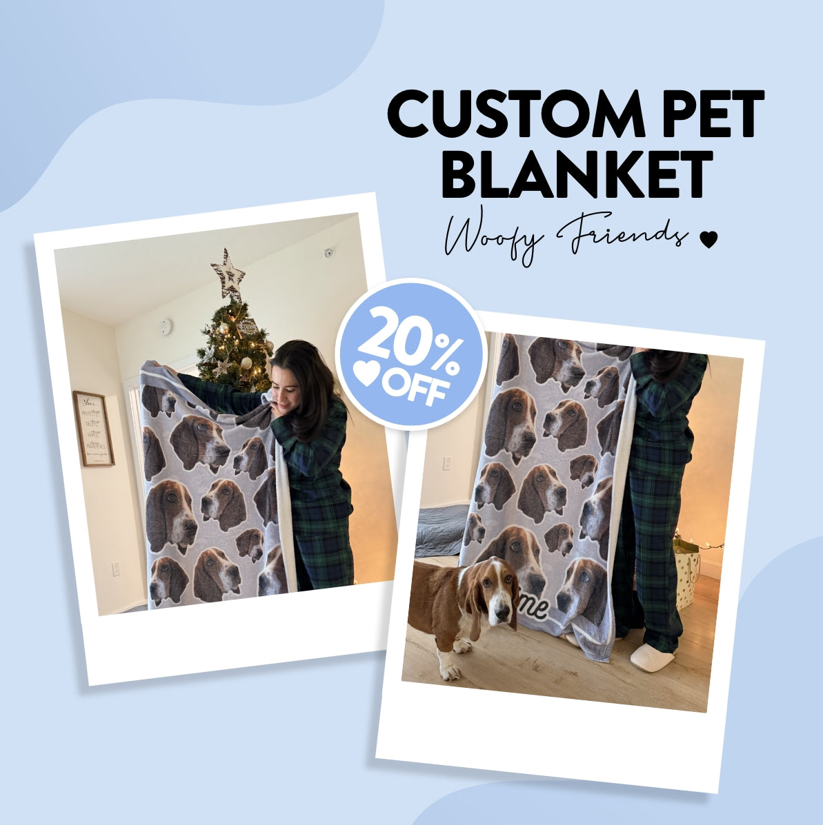 Upload your photo and we create a soft, premium fleece throw featuring your pet in a beautiful repeating pattern. Perfect for dog lovers, birthdays, holidays, or anyone who wants to keep their pet close.